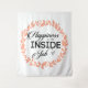 Happiness is an inside job graphic with a peach pink wreath and heart. Happiness, love and inner peace is always from within. Custom graphic design made with love.