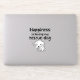 My rescue dogs inspired me to create this cute design for anyone that loves their rescue dog. They are so special and bring their dog parents so much happiness! The text on this design reads, "Happiness is loving my rescue dog." It has a hand-drawn cartoon dog with a bone in his mouth and a little tongue sticking out. This fun custom die-cut sticker makes a great, little gift for any dog lover!