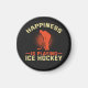 Hockey magnet with a silhouette hockey player reads Happiness is Playing Ice Hockey!