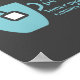 Fun wall art for tea lovers features aqua tea mug silhouette with funny quote that reads "Happiness comes from inner peace. Inner peace comes from TEA". Aqua and white design on charcoal grey background