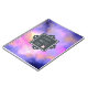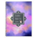 A spiral notebook with an inspirational quote which says "do what makes you happy". Illustrated with a cute kawaii bunny face holding a heart. The background is an abstract watercolor painting with luminous space clouds in soft pastel colours.
