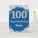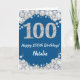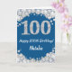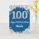 Happy 100th Birthday Blue and Silver Glitter Card with personalised name. For further customisation, please click the "Customise it" button and use our design tool to modify this template.