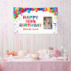 Happy 100th Birthday Colourful Balloons Confetti White Photo Banner. For further customisation, please click the "Customise it" button and use our design tool to modify this template.