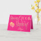 Stylish elegance with this decorative lettering in gold on a hot pink backdrop to wish a Happy 100th birthday. Happy Birthday is set in an ornate script, and the age is in a cordinating typeface with name in script at the bottom. Easily personalize the name and words inside to your own greeting if you wish. Faux sparkly balloons add razzle dazzle on the front! The same color hot pink background continues on the inside.