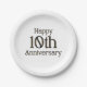These plates feature the words "Happy 10th Anniversary" in a unique print font with gold letters black outline. Plates come in a set of eight and is printed on durable paper stock great for serving cake, appetizers, or salads. All plates are FDA approved for food contact and safety fully biodegradable and printed with vegetable-based inks printed in USA.