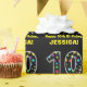 This fun birthday themed wrapping paper design features a large number "10" filled with a pattern of decorative star shapes having various colours and sizes, along with the message "Happy 10th Birthday,", and a custom name. The background is coloured black. Birthday themed wrapping paper like this might be a fun way to wrap a gift or present being given to celebrate somebody’s tenth birthday. [~Z0000429]