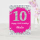 Happy 10th Birthday Hot Pink and Silver Glitter Card