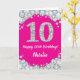 Happy 10th Birthday Hot Pink and Silver Glitter Card with personalised name. For further customisation, please click the "Customise it" button and use our design tool to modify this template.
