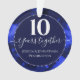 Lovely blue Happy 10th Anniversary ornament. 10th text is adjustable and can be changed to any year needed. Blue oil colour faux background created by Valarie Wade. Names and dates are adjustable. 10 years together, married, wedding anniversary keepsake celebration ornament. One photo option on the back of ornament. Works best with square photos.