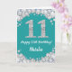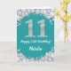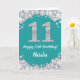 Happy 11th Birthday Teal Turquoise Aqua and Silver Glitter Card with personalised name. For further customisation, please click the "Customise it" button and use our design tool to modify this template.