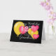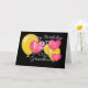 A greeting for Grandniece's 12th birthday with a black background, yellow balloons and pink hearts. Some original artwork ©delightful-doodles