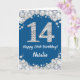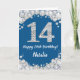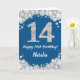 Happy 14th Birthday Blue and Silver Glitter Card with personalised name. For further customisation, please click the "Customise it" button and use our design tool to modify this template.