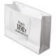 This gift bag feature the words "Happy 15th Anniversary" in a unique print font with gold letters black outline. All gift bags are made with premium quality paper for extra durability and your choice of matte or glossy finish available in 3 additional sizes great for baby showers, weddings or anniversaries.