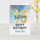 Happy 15th Birthday Watercolor Blue & gold Boy Card
