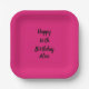 Happy 16th Birthday Custom Name Girly Pink Black Paper Plate
