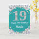 Happy 19th Birthday Teal Turquoise Aqua and Silver Glitter Card with personalised name. For further customisation, please click the "Customise it" button and use our design tool to modify this template.