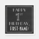 This stylish Roaring Twenties era inspired art deco style birthday paper napkin design features the message “HAPPY 1ST BIRTHDAY,”, plus a customisable recipient name. The number “1ST” has a fancy geometric lined look, and there is also a multi-line border around the birthday greeting message. Elegant birthday themed paper napkins like these might be used at a birthday party for somebody who is celebrating their first birthday. [~Z0000645]