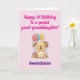 Happy 1st Birthday card for great-granddaughter with adorable puppy, cake and balloons. Fully customizable message inside, personalize with your great-grand-daughter's name and change text as you wish / add more. Delete inside text to write by hand. Instant download possible. Happy first birthday to a special great-granddaughter! Designed and texted by Best Baby Gifts - given with love.