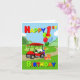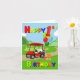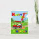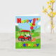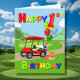 Zooming into the birthday scene, a bright red golf cart brings excitement and cheer! Up front sits a festive golf-themed cake, while the back is stacked with colourful presents and balloons topped off with a giant number 1 balloon. With bold primary coloured text, this card is perfect for celebrating a little boy’s special day.