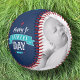 “Happy First Father’s Day.” Celebrate all of Dad’s joy of becoming a new parent. Cool, modern white and aqua blue typography and banner, plus sweet red hearts, overlay a navy blue background. Add two photos of your choice and customise the copy for the perfect, personalised keepsake baseball that he’ll treasure always. Makes a terrific Dad gift for Father’s Day!