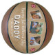 Happy 1st Father`s Day Daddy Keepsake 3 Photo Basketball. Rustic old paper beige background with cute flowers, the text is trendy white. Personalise with three photos, your name and the year. You can change daddy to dad, papa, pap,... This custom and personalised basketball is a perfect gift for a new dad on his 1st Father`s Day and sweet keepsake basketball for a dad who loves sports.