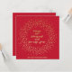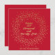 NewParkLane - Elegant personalised New Year Card, with 'happy 2024' (written fully as 'two thousand and twenty-four') in an elegant brush / script typography in faux gold, with a gold confetti wreath, against a deep red background.
