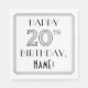 This luxurious 1920s-1930s era inspired art deco style birthday paper napkin design has the message “HAPPY 20TH BIRTHDAY,”, and a custom recipient name. The number “20TH” has a fancy geometric lined look, and there is also a lined border around the birthday greeting message. Elegant paper napkins like these might be used when hosting a party for somebody in celebration of their twentieth birthday. [~Z0000644]