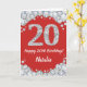 Happy 20th Birthday Red and Silver Glitter Card with personalised name. For further customisation, please click the "Customise it" button and use our design tool to modify this template.