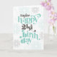This folded birthday greeting card features a decorative typographic design with the recipient's name and says "Happy 21st birthday". Decorated with mint and grey firework bursts and stars, this festive twenty-first birthday card is perfect for a celebration.