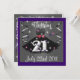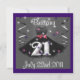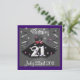 This invitation is colourful has sparkles. Beautiful black dress in the centre 21 on the bottom of the dress. Purple and Black