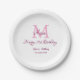 Happy 21st Birthday pink add name monogram modern Paper Plate