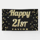 Happy 21st Gold Bling Typography Confetti Black Banner