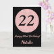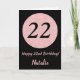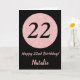 Happy 22nd Birthday Black and Rose Pink Gold Card