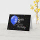 A birthday card for a 22nd birthday with a black background, a blue balloon and scattered swirls and stars.