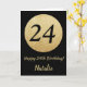 Happy 24th Birthday Black and Gold Glitter Card with personalised name. For further customisation, please click the "Customise it" button and use our design tool to modify this template.