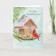 This hand-painted watercolor features a charming birdhouse adorned with a Happy Birthday banner, as a tufted titmouse and a cardinal stop by on a crisp winter day. Soft seasonal details and gentle colors create a warm, thoughtful scene, making it a lovely birthday piece for someone celebrating their 25th birthday!