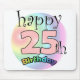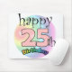 Gelukkige 25ste verjaardag muismat Leuk als cadeau voor iemand die vijfentwintig is geworden. Regenboog kleuren. 25 is in de kleur roze.