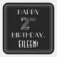HAPPY 2ND BIRTHDAY; Art Deco Style; Custom Name Square Sticker