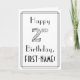The front of this luxurious 1920s/1930s art deco inspired birthday greeting card design has the message “Happy 2nd Birthday,” along with a custom recipient name. The number “2nd” on the front has a fancy lined appearance, and there is also a lined border. The inside features a customised birthday greeting message, or could perhaps be cleared and left blank if a message is to be written by hand instead. A stylish, personalised birthday greeting card like this might be sent in celebration of somebody’s second birthday. [~Z0000641]
