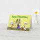 Design is brilliant - there is a male version and a female version of this cartoon and I bought both! You can personalize all the type on this card. I love these cartoon cards from Le Grand Art. I will be coming back to buy more. So pleased with the quality. Great colour and good quality cardstock.