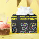 This fun birthday-themed wrapping paper design features a large number "35", filled with a pattern of star shapes of various colours and sizes. It also features the message "Happy 35th Birthday,", and a personalised name. The background is coloured black. Birthday themed wrapping paper like this might be a fun way to wrap a gift or present being given to somebody who is celebrating their 35th birthday. [~Z0000429]