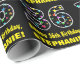 This fun birthday themed wrapping paper design features a large number "36", filled with a pattern of star shapes having various sizes and colours. It also features the message "Happy 36th Birthday,", and a personalised name. The background is coloured black. Fun wrapping paper like this might be used when wrapping presents being given to somebody in celebration of their 36th birthday. [~Z0000429]