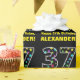 This fun birthday themed wrapping paper design features a large number "37", filled with a pattern of decorative star shapes having various sizes and colours. It also features the message "Happy 37th Birthday,", and a personalised name. The background is coloured black. Wrapping paper like this might be a fun way of wrapping a birthday present or gift being given to somebody who is celebrating their thirty seventh birthday. [~Z0000429]