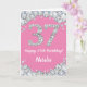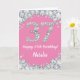 Happy 37th Birthday Pink and Silver Glitter Card with personalised name. For further customisation, please click the "Customise it" button and use our design tool to modify this template.