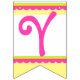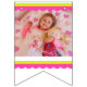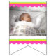Bright pink, yellow and green Happy 3rd birthday girl party bunting. Personalise with your child's own birthday year and two of your favourite photos of the birthday girl. Currently reads Happy 3rd Birthday. Matches other items in the Bunting flags birthday collection. Art and design by Sarah Trett. www.sarahtrett.com for www.mylittleeden.com