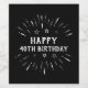 Happy 40th Birthday Fireworks Black White Grey Wine Label