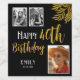 Happy 40th Birthday Gold Foliage 3 Photo Wine Label. Celebrate a milestone in style with this Elegant Black & Gold 40th Birthday bottle label. Featuring a sophisticated black background adorned with luxurious gold foliage, this design adds a touch of class. Personalized with three photos, this label is perfect for making the guest of honor feel extra special. Make turning 40 unforgettable with this timeless and chic design!