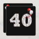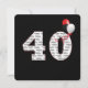 Birthday party invite with bold black and white happy 40 text on black with party balloon bouquet