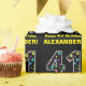 This fun birthday-themed wrapping paper design features a large number "41", filled with a pattern of star shapes having various sizes and colours. It also features the message "Happy 41st Birthday,", and an editable name. The background is coloured black. Wrapping paper like this might be a fun way of wrapping a birthday present or gift being given to somebody who is celebrating their forty first birthday. [~Z0000429]