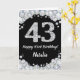 Happy 43rd Birthday Black and Silver Glitter Card with personalised name. For further customisation, please click the "Customise it" button and use our design tool to modify this template.